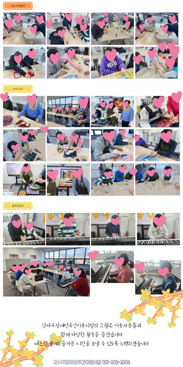 강서구장애인주간이용시설 2월 소식지 페이지 정보 작성일 25-03-12 10:57 본문 강서구장애인주간이용시설 2월 소식지입니다. 목록 다음글강서구장애인주간이용시설 1월 소식지 25.02.14