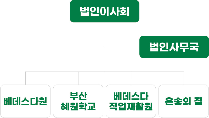 “베데스다”는 성경 요한복음 5장2절~9절 말씀에 나오는 연못 이름으로 온갖 불치의 장애를 입은 사람들이 그곳에서 치유함을 받고 완전히 나음을 입었다고 하여 지어진 이름입니다. 이곳 베데스다에 모인 장애인들이 자신들의 장애를 스스로 극복하고 자립하여 사회에서 비장애인과 동등한 인격체로서 하나님의 축복 아래 건강하고 행복하게 살아가라는 목적으로 설립되었습니다.